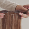 Osynliga löshår-clips är skapade för dig som vill ha ett naturligt resultat med minimal ansträngning. Remsorna är designade med en tunn och osynlig kant som ligger tätt mot hårbotten och smälter perfekt in i ditt eget hår – särskilt om du har fint eller tunt hår.